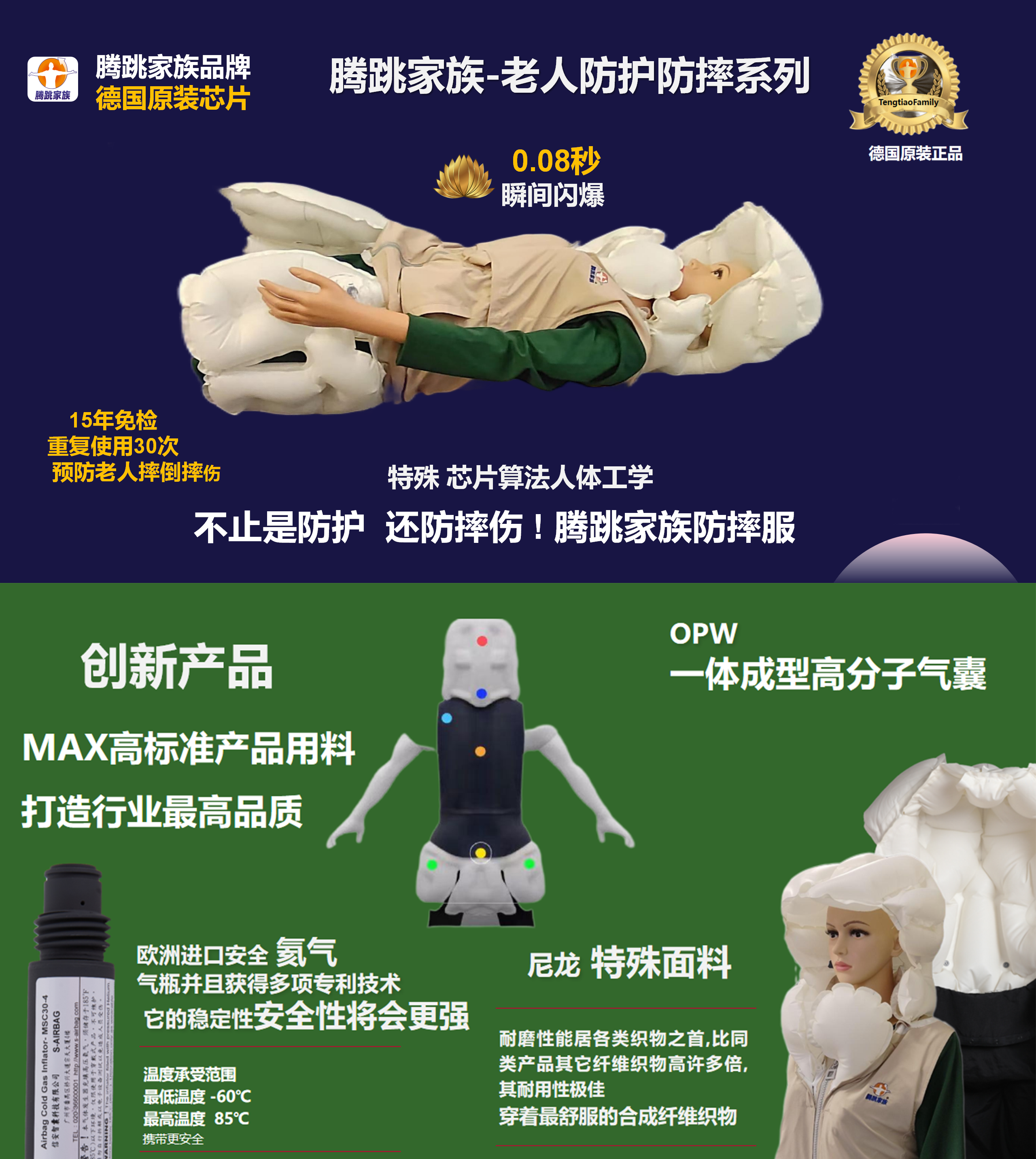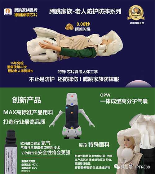防摔马甲生产厂家找腾跳家族防摔服|老人防摔服预防老人摔倒摔伤|腾跳家族高空作业防坠防摔服|FH-2防坠缓冲防坠防摔防护服生产厂家联系腾跳家族|智能防坠缓冲防护防摔服厂家电话18922292239|0.08秒气囊快递展开防坠防摔服腾跳家族品牌厂家|15年免维护高空防坠防摔防护服服|德国工艺高空作业防坠防摔防护服生产厂家|OPW一体成型气囊防坠服|惰性氦气缓冲防坠服防摔服|智能识别高坠防摔防护服随着年龄的增长,老年人面临着许多挑战,其中最大的挑战之一是跌倒和受伤的风险。跌倒对于老年人来说是一种非常危险的事故,